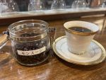 今回、取材した自家焙煎珈琲店では、深煎りで焙煎したインドプランテーションAを使って、コーヒーゼリーを作っている。コーヒーとセットにもできるので、コーヒーゼリーとセットでいただいた。