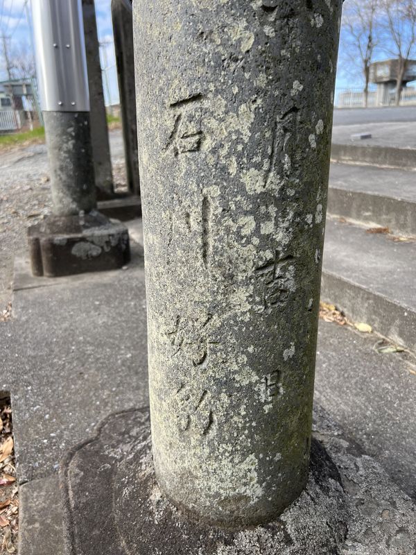 左側の幟枠石(正面)の銘は「奉 石川家氏神水神社」