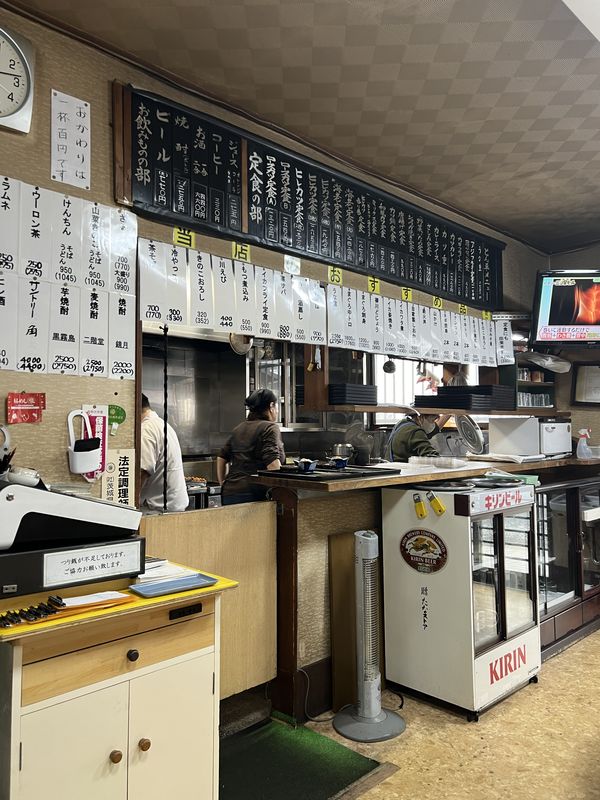 壁にズラリと貼られたメニュー札を見ると、気になる料理がたくさんあった。エビフライ・から揚げ・しょうが焼き・カツカレー・アジフライ・かきフライ・刺身・コロッケ……。